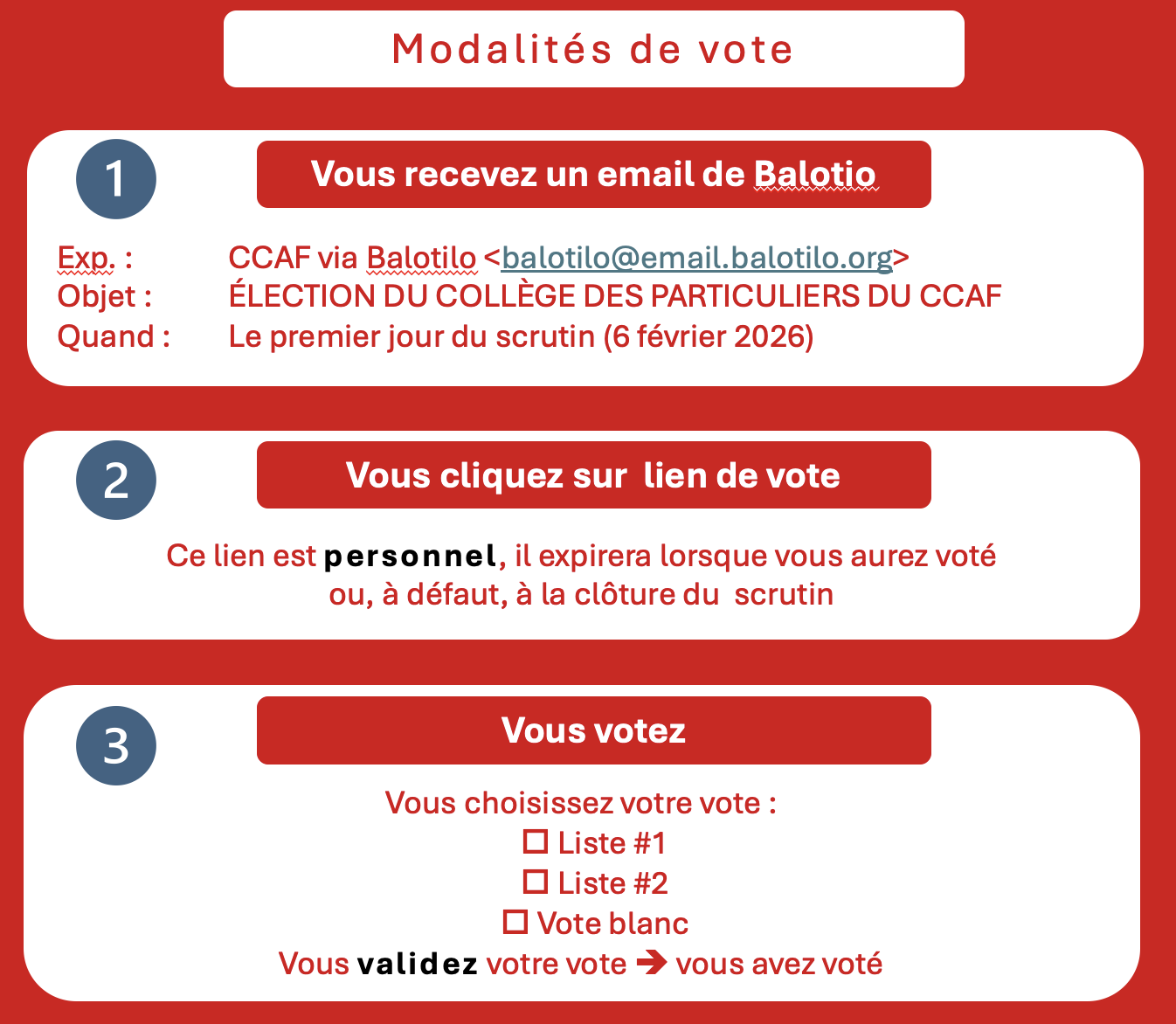 Vous souhaitez vous engager davantage ? Vous pouvez vous présenter aux élections du Conseil National du CCAF en tant que candidat.